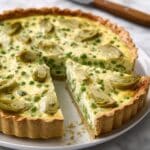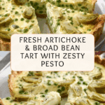 A delicious and vibrant Artichoke & Broad Bean Tart paired with a fresh watercress pesto. Featuring a crisp shortcrust pastry filled with creamy ricotta, crème fraîche, broad beans, and tangy artichoke hearts, topped with a homemade watercress and pine nut pesto. Perfect for a light lunch or elegant brunch.