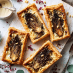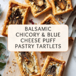 These balsamic chicory, pine nut, and blue cheese tartlets combine tangy roasted chicory with creamy blue cheese on a flaky puff pastry base. They make a sophisticated appetizer or a light lunch that’s full of flavor and texture.