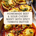 This Beef & Sour Cherry Manti with Tomato-Chilli Butter is a delightful twist on traditional Turkish dumplings. Filled with savory beef and tart cherries, then topped with a rich, spicy tomato butter, it’s a perfect dish to impress at your next dinner.