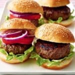 Store any leftover cooked burgers in an airtight container in the refrigerator for up to 2 days. Reheat gently in a skillet or microwave before serving. It’s best to assemble the burgers fresh to keep buns from becoming soggy.