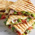 These beef, cheese, and broad bean quesadillas are a delicious twist on a classic favorite. Combining tender steak, creamy cheddar, and fresh broad beans, they offer a satisfying meal that’s quick and easy to prepare. Perfect for a casual dinner or a flavorful snack.