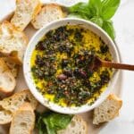 Store any leftover dipping oil in an airtight container in the refrigerator for up to 3 days. To serve, bring it back to room temperature and stir well. It’s best enjoyed fresh but can be lightly reheated if the oil solidifies.