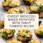 - Make Tomato Relish (Optional): Heat 1 tablespoon of oil in a pan over medium heat. Add the finely chopped onion and gently fry until softened. Stir in the crushed garlic clove, then add the tomato passata, red wine vinegar, muscovado sugar, and Worcestershire sauce. Bring to a boil, then reduce heat and simmer for 5 minutes. Season to taste. Serve warm or cold alongside the broccoli baked potatoes.