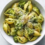- Combine pasta and pesto: Toss the drained pasta shells with the broccoli pesto until evenly coated. Stir in the reserved broccoli florets gently.