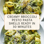 A vibrant and flavorful broccoli pasta shells recipe that combines roasted broccoli and garlic with fresh herbs, lemon, and parmesan to create a creamy pesto sauce. This dish is quick to prepare, perfect for a nutritious weeknight dinner, and offers a delightful balance of textures and flavors.