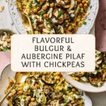 Keywords: bulgur pilaf, aubergine recipe, vegetarian pilaf, Mediterranean bulgur, chickpea pilaf, easy vegetarian meal