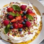 - Sprinkle Toppings: Evenly scatter the chopped toasted pistachios or almonds, mini chocolate chips or shavings, granola if using, and edible rose petals over the berries and cream cheese layer.