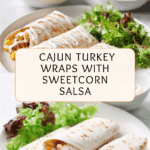 Keywords: Cajun turkey wraps, sweetcorn salsa, tortilla wraps, quick turkey recipe, spicy turkey wraps, healthy lunch