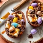 - Decorate and Serve: Once set, decorate the cheesecake-filled Easter eggs by scattering mini chocolate eggs or other Easter treats on top. Drizzle with caramel sauce or cooled melted chocolate to enhance flavor and presentation. Serve chilled for the best experience. Any extra cheesecake filling can be served separately in glasses over crushed digestive biscuits for an additional treat.