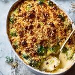 Keywords: Brussels sprouts, gratin, cheesy, vegetarian, side dish, baked, creamy sauce, nutty topping