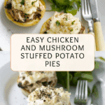 Delicious and comforting Chicken & Mushroom Spud Pies featuring creamy chicken and mushroom filling topped with fluffy mashed potatoes, baked until golden and crisp. Perfect as a hearty meal served with greens or salad.