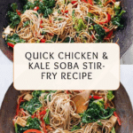 Keywords: chicken stir-fry, kale stir-fry, soba noodle recipe, healthy chicken recipe, quick dinner, sesame oil, lime chicken, Brussels sprouts stir-fry