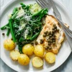 Keywords: Chicken Piccata, lemon chicken, capers, garlicky greens, new potatoes, easy dinner, Italian chicken recipe