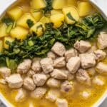 Chicken Tinola is a comforting Filipino chicken soup characterized by tender chicken simmered with fresh ginger, garlic, onion, and vegetables like chayote squash, potatoes, and spinach. This hearty and flavorful dish is traditionally served warm with steamed rice, making it a perfect choice for a nourishing and satisfying meal.
