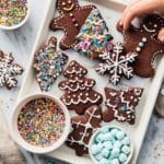 Delight in these festive Chocolate Christmas Biscuits, rich in cocoa and perfectly sweetened with icing sugar. These tender, melt-in-your-mouth cookies are shaped into charming holiday designs and adorned with colorful icing, chocolate, and sprinkles, making them a fun and delicious treat to share during the Christmas season.