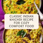 Khichdi is a beloved Indian comfort food known for its nourishing and soothing qualities. This traditional recipe combines rice and moong dhal with fragrant spices to create a warm, porridge-like dish that’s both filling and flavorful.