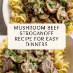 Keywords: beef stroganoff, mushroom stroganoff, creamy beef recipe, easy dinner, comfort food, egg noodles, sautéed mushrooms