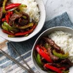 Keywords: beef in black bean sauce, easy beef stir fry, Chinese beef recipe, black bean sauce recipe, quick Asian dinner, rump steak stir fry