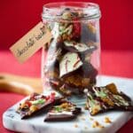 Store the chocolate bark in an airtight container at room temperature in a cool, dry place for up to two weeks. If you live in a warm climate, store it in the refrigerator and bring to room temperature before serving to avoid condensation. The bark tastes best fresh but keeps well when properly stored.