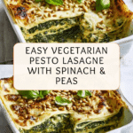 Keywords: pesto lasagne, vegetarian lasagne, easy lasagne recipe, Italian pasta bake, spinach and pea lasagne