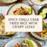 A vibrant and flavorful chilli crab-fried rice featuring fragrant aromatics, tender crabmeat, and a delightful crunch from crispy fried leeks. This quick stir-fried dish combines the perfect balance of spicy sriracha, tangy lime, and savory soy and fish sauces, making it a delicious and satisfying meal.