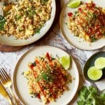 - Serve: Plate the crab-fried rice and garnish with the crispy fried leeks, fresh coriander, lime wedges, and extra sriracha on the side for added heat.