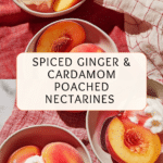 Keywords: poached nectarines, ginger cardamom syrup, summer dessert, fruity dessert, easy poached fruit, vegan dessert option, fragrant syrup