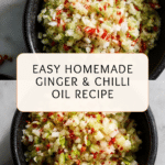 This vibrant ginger and chilli oil adds a spicy, aromatic kick to any dish. Made with fresh spring onions, ginger, and red chilli, it’s a simple but flavorful condiment that can transform your meals.