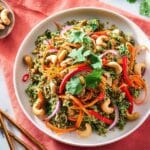 - Serve: Transfer to serving plates and scatter the toasted cashews, extra coriander, and additional sliced red chilli over the top if desired. Serve immediately.