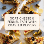 This goat’s cheese, fennel, and roasted red pepper tart is a delightful combination of creamy, savory, and slightly sweet flavors. It’s perfect for a light lunch or an impressive appetizer, serving warm or at room temperature.