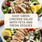 Keywords: Greek chicken salad, grilled chicken salad, healthy chicken salad, Mediterranean chicken salad, feta cheese salad, fresh vegetable salad