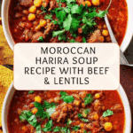 Keywords: Harira, Moroccan soup, beef soup, chickpea soup, lentil soup, traditional Moroccan recipe, hearty soup, winter soup