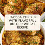 This harissa-spiced chicken with bulgur wheat is a vibrant and flavorful dish inspired by North African cuisine. The smoky heat of harissa pairs beautifully with tender chicken and nutty bulgur, complemented by sweet apricots and toasted pine nuts for a deliciously balanced meal.