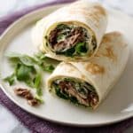 - Serve and enjoy: Fold the tortillas to enclose the filling, cut each wrap in half, and enjoy immediately while the meat is still warm and the vegetables crisp.