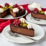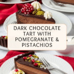 This Holiday Deep Dark Chocolate Tart with Pomegranate & Pistachios is a rich, decadent dessert perfect for festive occasions. The bittersweet chocolate ganache pairs beautifully with the tartness of pomegranate seeds and the crunch of toasted pistachios, all nestled in a spiced cocoa crust.
