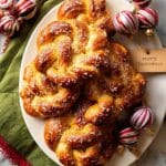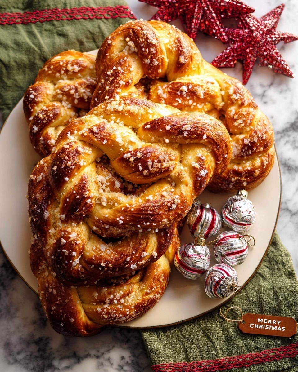 These Honey Butter Soft Pretzel Candy Canes combine the classic chewiness of soft pretzels with a festive candy cane shape, brushed with a sweet and buttery honey glaze. Perfect for holiday gatherings or cozy treats, these pretzels are boiled for the perfect texture, baked until golden, and finished with a luscious honey butter for a delightful flavor and soft bite.