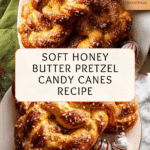 These Honey Butter Soft Pretzel Candy Canes are a festive twist on a classic snack, perfect for holiday gatherings or cozy winter treats. Soft, chewy pretzels shaped like candy canes get a sweet glaze of honey butter that keeps them irresistibly delicious.