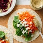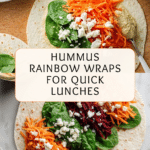 Keywords: hummus wraps, rainbow wraps, healthy lunch, vegetarian wraps, easy lunch recipe, Mediterranean wrap, no-cook lunch