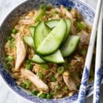 - Serve: Divide the Indonesian fried rice evenly between 4 bowls. Garnish with the cucumber half moons and serve with extra soy sauce on the side for added seasoning if desired.