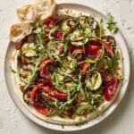 This layered hummus and griddled vegetable salad is a vibrant, flavorful dish that combines smoky roasted peppers with tender courgettes and aubergine. It’s perfect as a light lunch or a stunning appetizer served with crusty ciabatta.