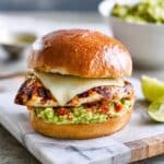 - Assemble the Burger: Spread the avocado salsa generously over the base of the toasted bun, layer on the cooked chipotle chicken breast with melted cheese, and place the top bun over it. Serve immediately to enjoy the warm, melty, and fresh combination.