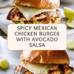 Keywords: Mexican chicken burger, chipotle chicken, avocado salsa burger, spicy chicken sandwich, brioche bun burger