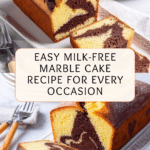 This milk-free cake is a delightful treat that combines a classic vanilla base with a rich chocolate center. It’s perfect for those avoiding dairy but still craving a moist, flavorful dessert. The marbled effect adds a lovely visual touch that’s sure to impress.