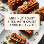 These mini nut roasts with candied carrots are a delicious and hearty vegetarian main, perfect for festive occasions or comforting dinners. Featuring a nutty, savory base blended with mushrooms, lentils, and chickpeas, each loaf is topped with sweet, caramelized carrots and fragrant herbs for a beautiful presentation and rich flavor.
