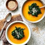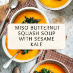 Keywords: miso soup, butternut squash soup, vegetarian soup, healthy soup, kale topping, autumn soup, easy soup recipe