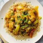 This Moroccan chicken with fennel and olives is a fragrant and hearty dish that combines tender chicken thighs with aromatic spices, fresh fennel, and tangy olives. Paired with wholewheat couscous and chickpeas, it makes a wholesome and satisfying meal perfect for any night of the week.