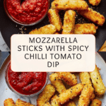 Mozzarella sticks with chilli tomato sauce are a deliciously crispy appetizer with a gooey cheese center and a spicy, tangy dipping sauce. Perfect for sharing or as a snack, this recipe combines crunchy coating with a vibrant homemade sauce that adds just the right kick.