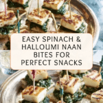 Keywords: naan, spinach, halloumi, appetizer, grilled cheese bites, Indian spices, garam masala, easy snack