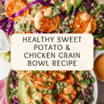 Store the grain bowl components separately in airtight containers for up to 3 days in the refrigerator. Keep avocado slices separate to prevent browning. Reheat the quinoa, chicken, and sweet potatoes gently in the microwave or on the stove, then assemble fresh before serving.
