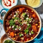 This one-pan lamb tagine with chickpeas is a flavorful North African-inspired dish featuring tender lamb neck fillet simmered in a fragrant blend of ras el hanout, harissa, preserved lemon, and warming spices. Cooked low and slow in the oven until melt-in-your-mouth tender, it is enriched with chickpeas and dried apricots, then finished with a refreshing spiced yogurt, toasted almonds, and fresh coriander. Perfect served alongside fluffy couscous for a comforting and hearty meal.